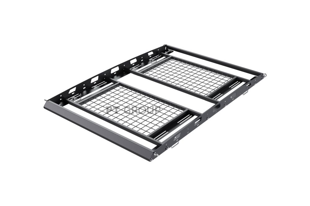 Багажник-корзина двухсекционная универсальная с основанием решётка (ППК)  на крышу автомобиля — собственная разработка компании ПТ ГРУПП.  Конструкция корзины предусматривает транспортировку длинномерных  и негабаритных грузов. Универсальные крепления корзины подходят ко всем маркам и моделям легковых автомобилей оборудованных рейлингами и поперечинами.