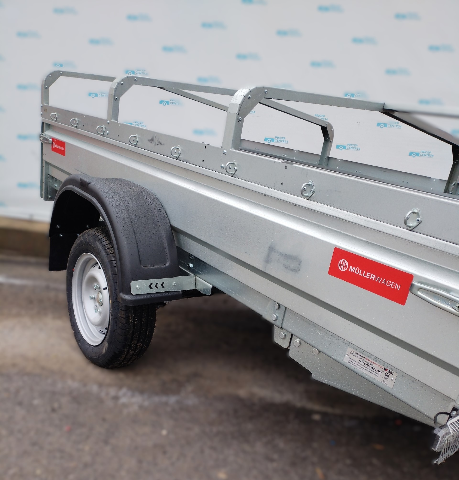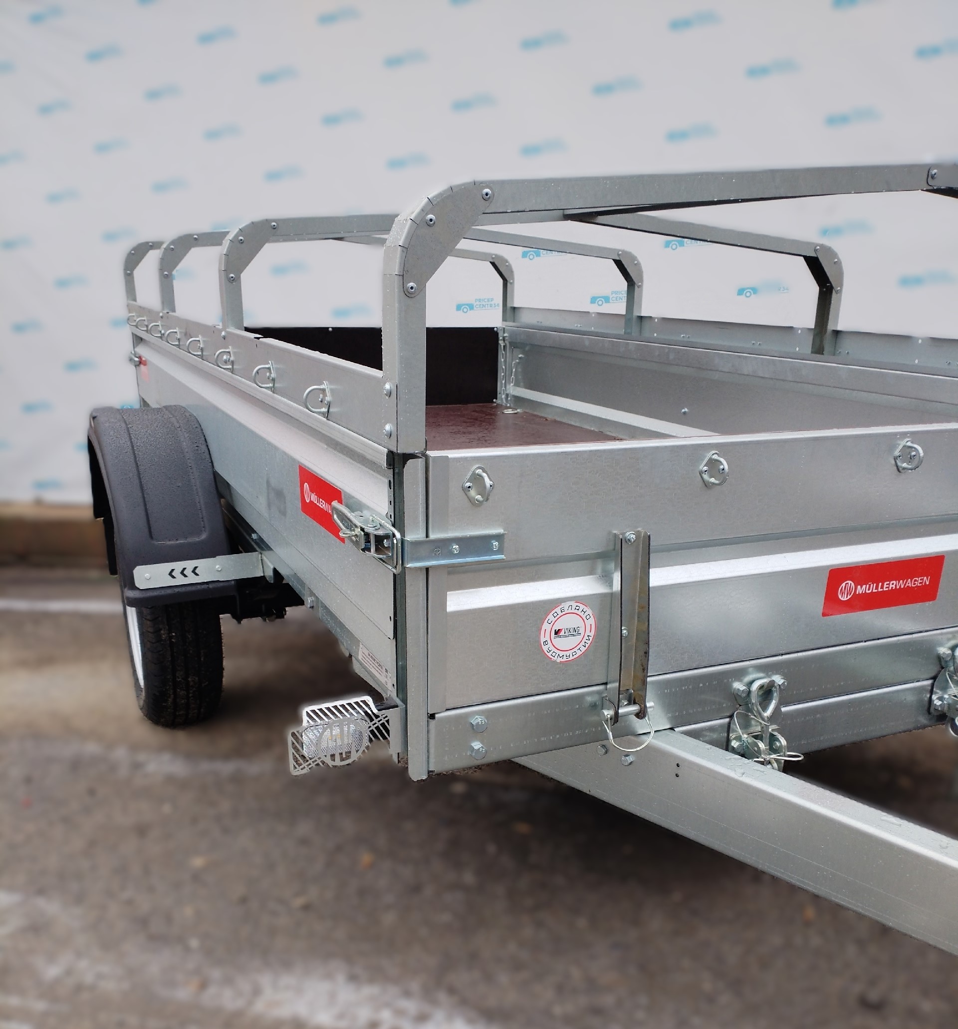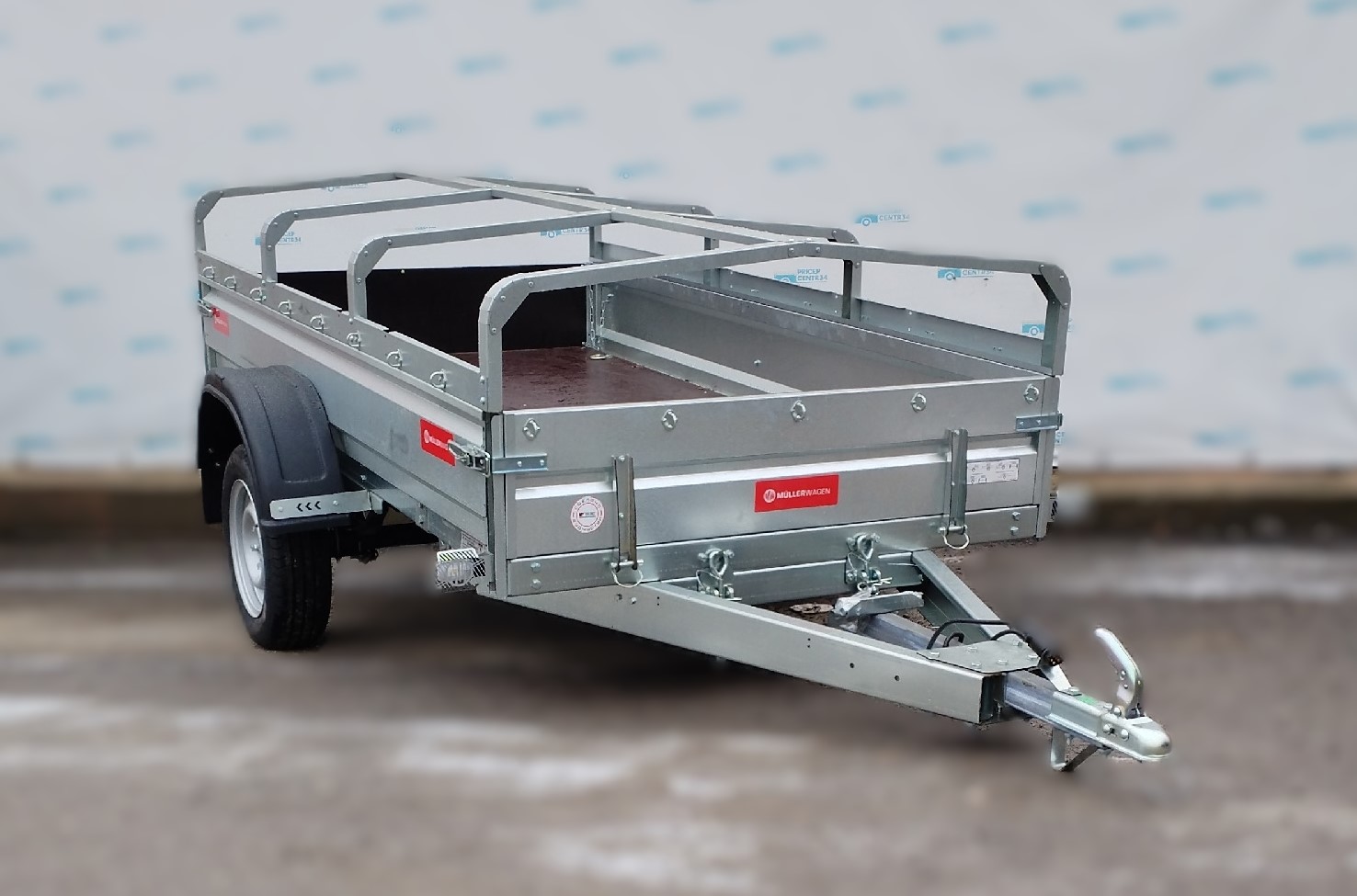 Одноосный самосвальный бортовой прицеп Mullerwagen 1325 с бортами из оцинкованного стального листа 1.5 мм.