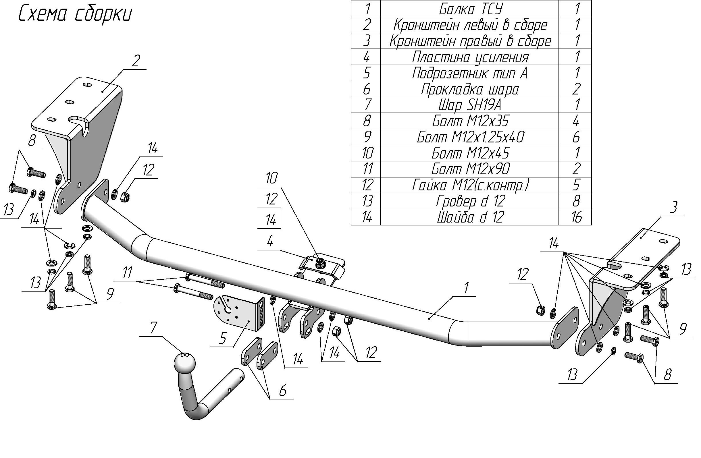 Конструкция фаркопа «Leader» представляет собой разборный вариант, что позволяет экономить место при складировании, транспортировке и облегчает процесс монтажа.
