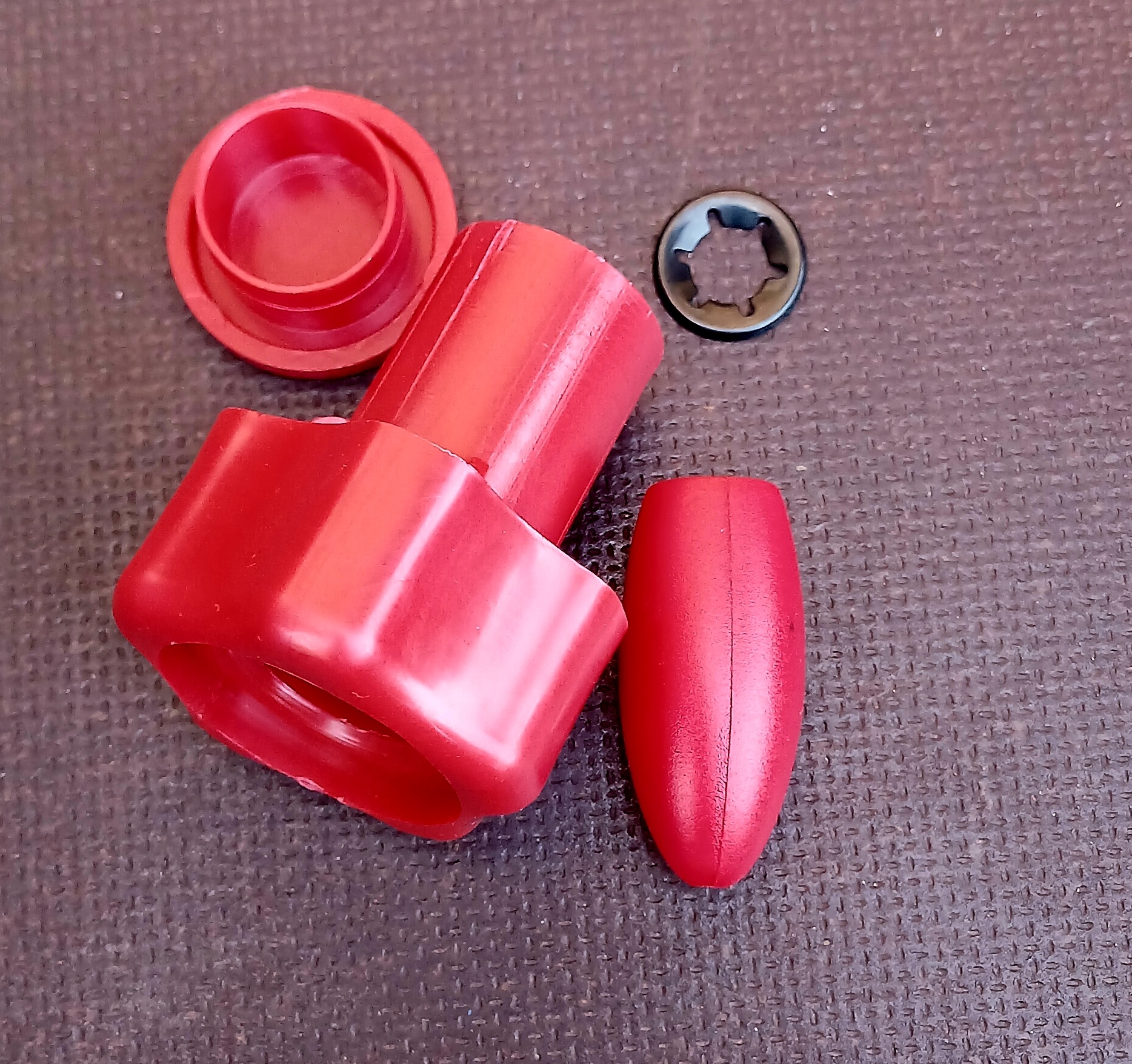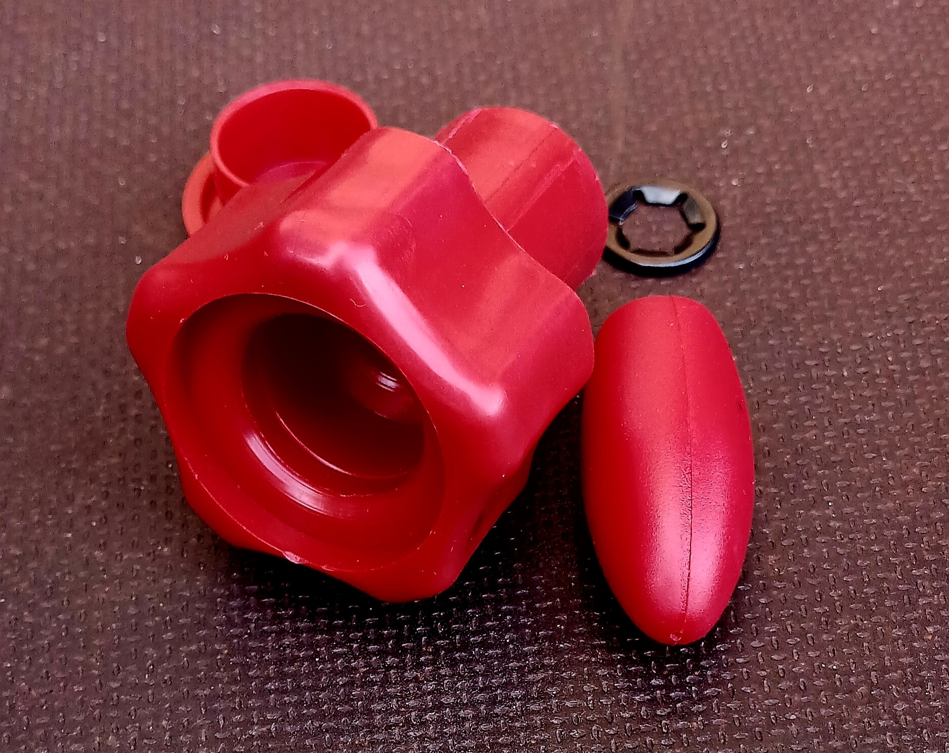 Комплектация: — Ручка опорного колеса — Стопорное кольцо — Заглушка — Ручка хомута
