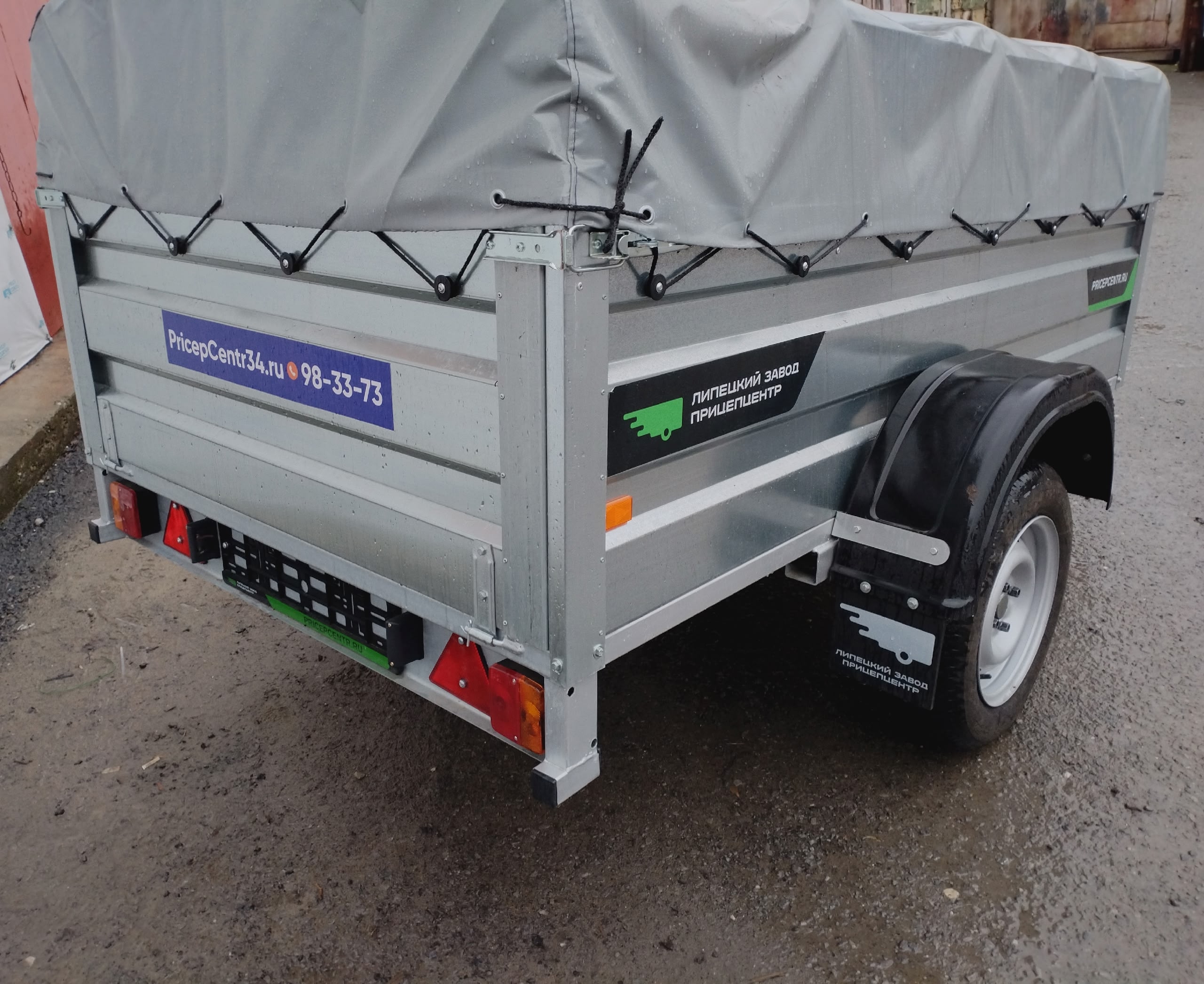 Передний и задний борт — откидные. На дно прицепа устанавливается влагостойкая фанера толщиной 6 мм.