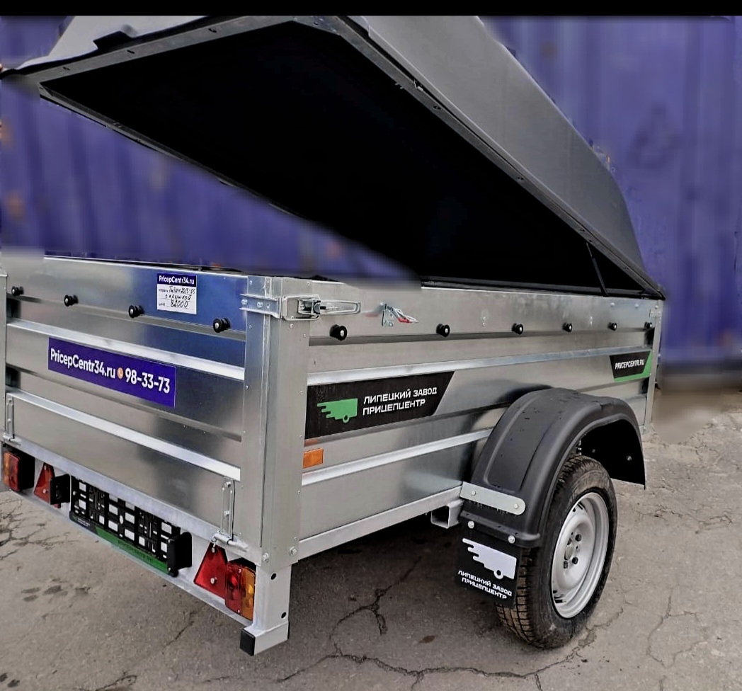 Передний и задний борт — откидные. На дно прицепа устанавливается влагостойкая фанера толщиной 6 мм.